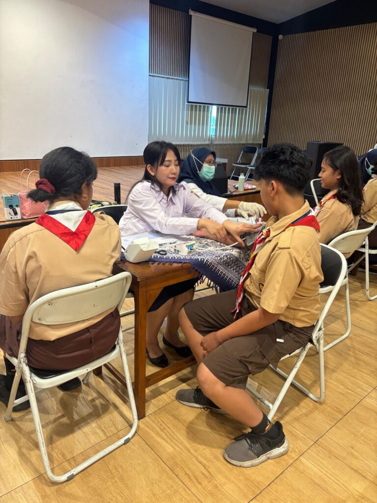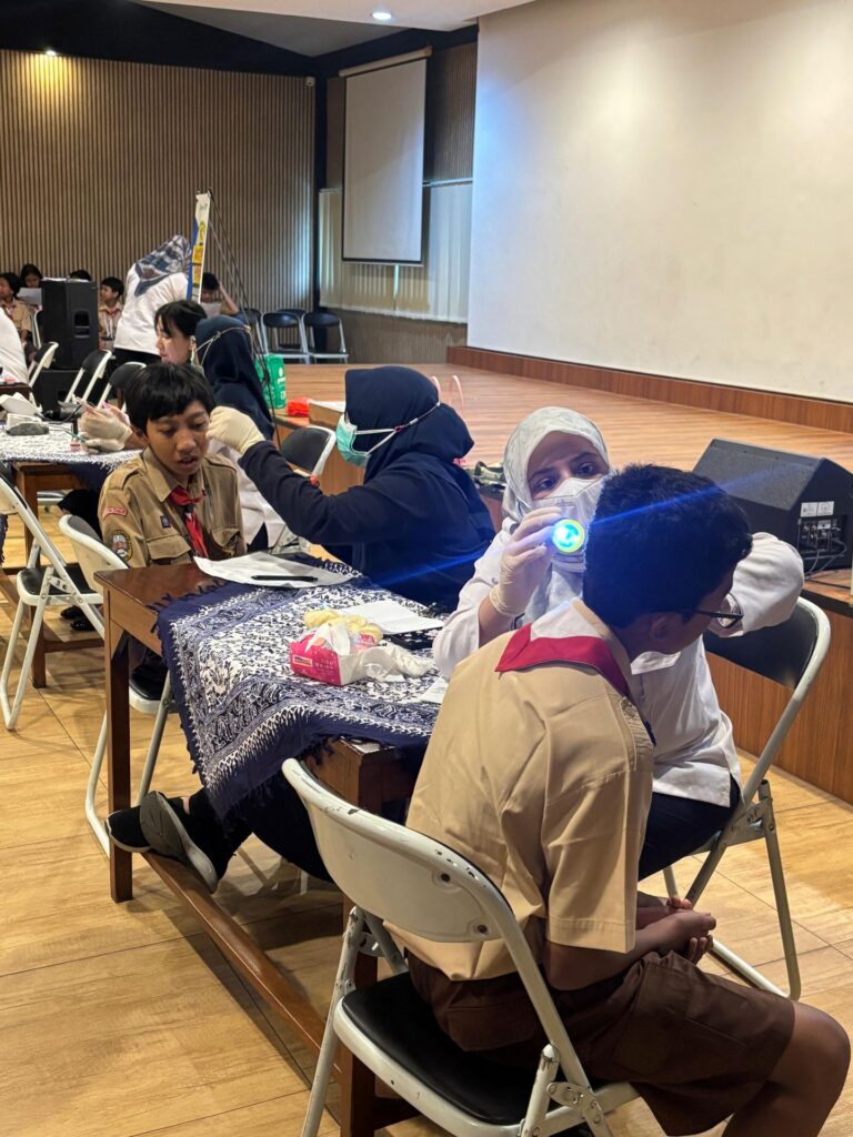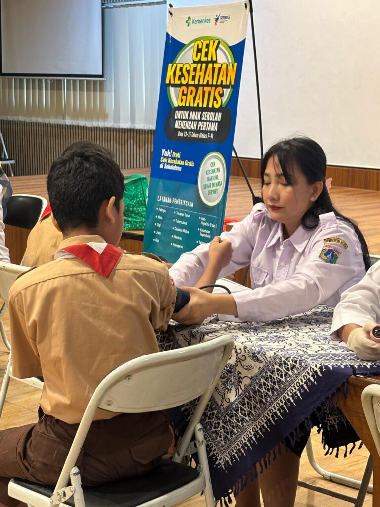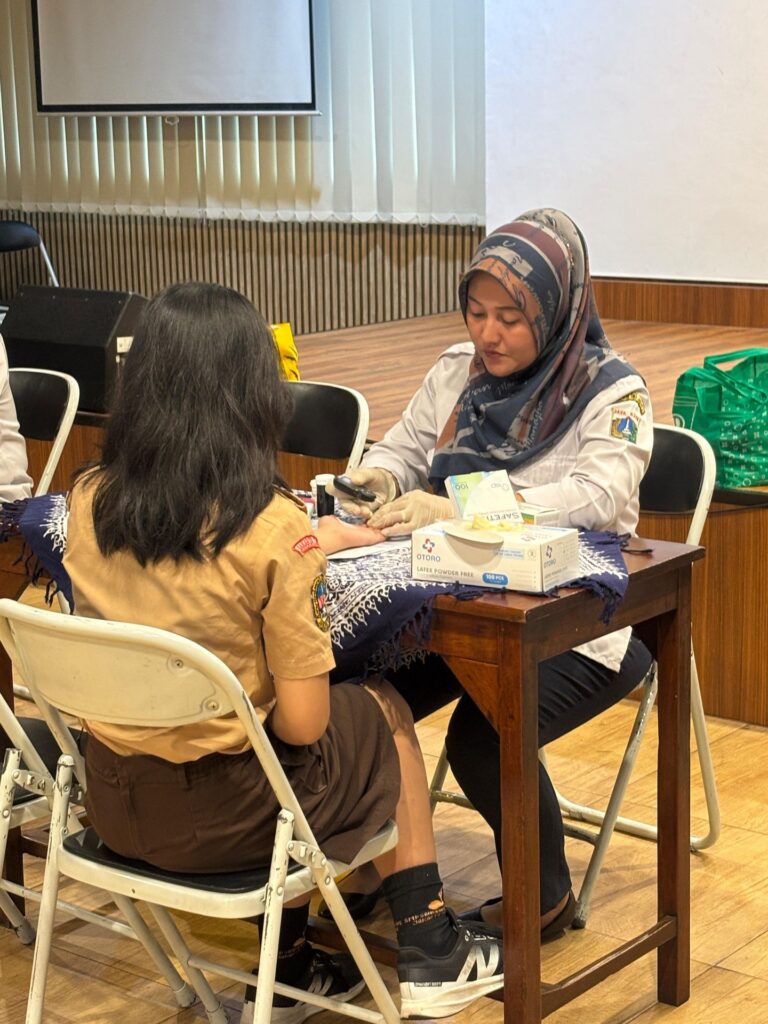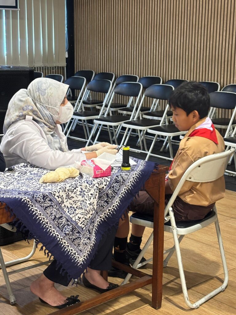 SMP Santo Antonius melaksanakan kegiatan skrining kesehatan yang bertujuan untuk memperoleh data kesehatan siswa secara jelas, teratur, dan terkonfirmasi. Melalui pemeriksaan ini, apabila ditemukan adanya masalah kesehatan, pihak sekolah dapat segera menyampaikan informasi tersebut kepada orang tua untuk mendapatkan tindak lanjut yang tepat. Skrining mencakup beberapa aspek penting, mulai dari pengukuran fisik (tinggi badan, berat badan, dan tekanan darah), pemeriksaan umum (mata, telinga, gigi, dan kondisi tubuh secara keseluruhan), hingga tes tambahan seperti pemeriksaan kadar hemoglobin (HB) dan gula darah.